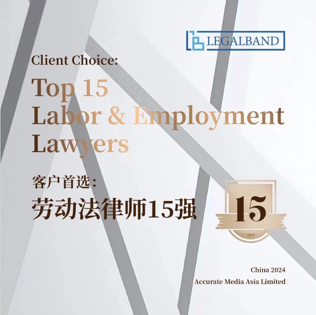 《2024年度LEGALBAND客户首选:劳动法律师15强》参考了各大律所的推荐材料、律师自荐材料以及客户反馈信息等内容,同时结合LEGALBAND中国区驻地调研团队对劳动法领域的长期关注与洞察,最终选出15位中国大陆地区最受客户青睐的劳动法律师。
