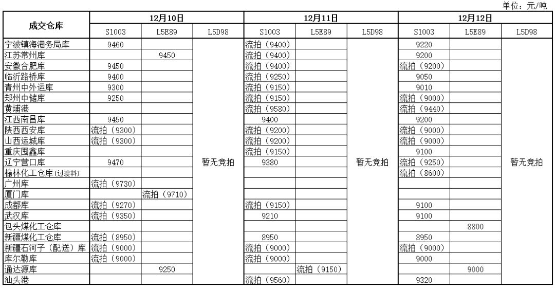 神华PP12月12日竞拍价格一览