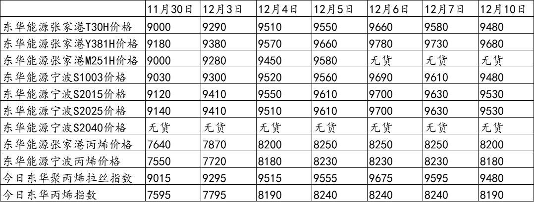 东华能源12月7日竞拍价格及东华指数