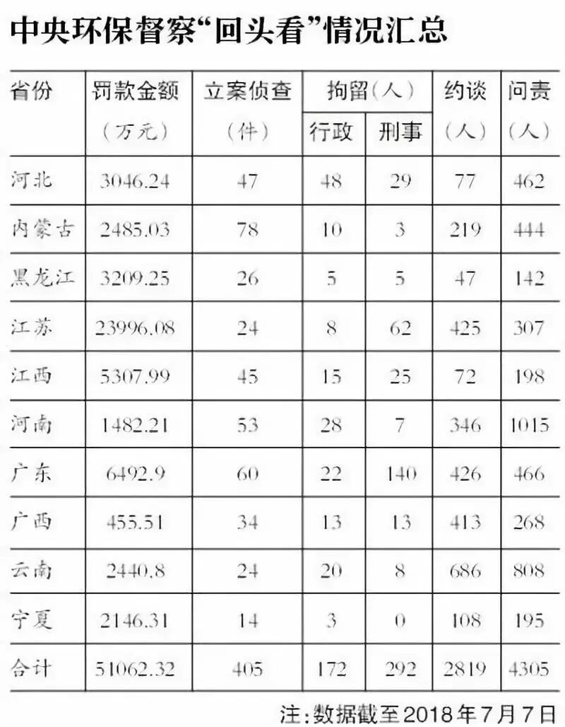 首批中央环保督察“回头看”于7月结束后,央视曾连续通报的50多起典型案例,评论称“,“假装整改”、“表面整改”、“敷衍整改” 等现象变本加厉、触目惊心”。