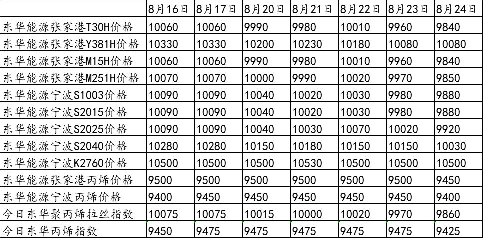 东华能源8月23日竞拍价格及东华指数