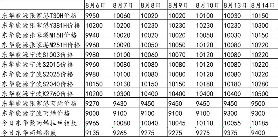 东华能源8月13日竞拍价格及东华指数