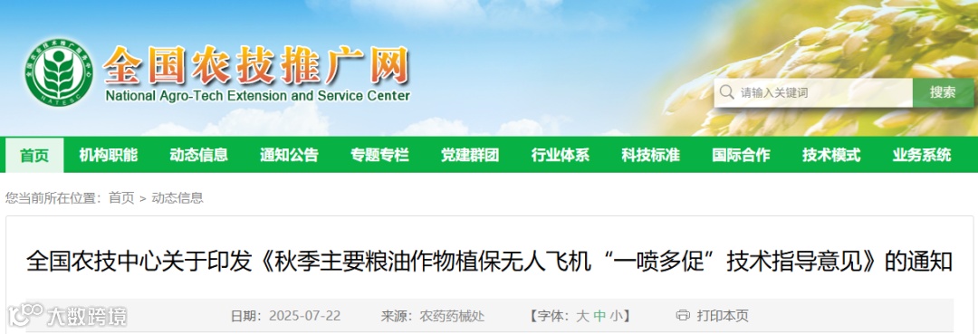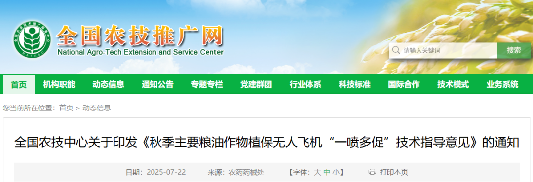 为科学指导水稻、玉米、大豆等秋粮作物植保无人飞机“一喷多促”作业,促进大面积单产提升,全国农技中心特制定本指导意见。