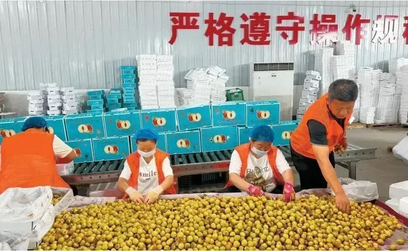 在大荔县新禧冬枣专业合作社,刚从马来西亚和越南考察归来的合作社理事长张全喜满脸喜悦。他兴奋地分享着此次出国的收获:“大荔冬枣脆甜可口、品相上佳,在国外可受欢迎了。”他先后与越南两家采购单位签订总计1599吨的供货协议。如今,合作社的冬枣正通过智能标准化分拣生产线,按照形状、级别称重打包被运往国外市场。