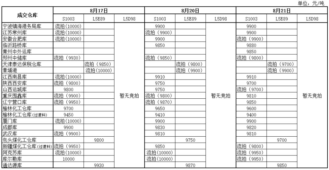 神华PP8月21日竞拍价格一览