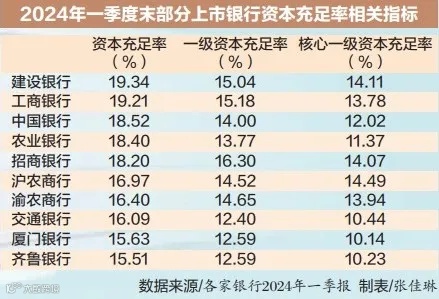 当前,部分银行面临资本相对紧缺的问题。记者梳理上市银行一季报发现,截至一季度末,青岛银行、浦发银行、浙商银行、郑州银行、兰州银行、杭州银行、成都银行核心一级资本充足率在9%以下;兰州银行、浙商银行、杭州银行、成都银行一级资本充足率在10%以下;郑州银行、苏农银行、兰州银行资本充足率在12%以下。