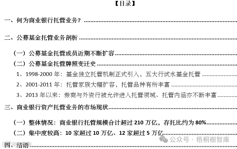 5、托管业务不仅能够丰富商业银行的业务模式,还有助于商业银行打开新型业务空间,避免错失财富管理业务、跨境业务等带来的机会。