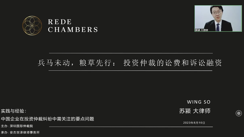 香港履德大律师事务所苏颍大律师以“兵马未动,粮草先行:投资仲裁的讼费和诉讼融资”为题,从投资仲裁的讼费分配问题、世界各地就投资仲裁的诉讼融资的最新规定及披露要求以及投资仲裁讼费分配和诉讼融资发展前景等方面,进行了详尽的分析并分享了独到的见解。