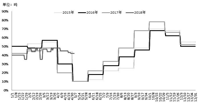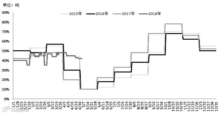 从历史规律来看,每年的5—6月为我国农膜生产的相对淡季时段,而国内PE生产装置也大多在4—5月进行检修,从而错开需求低谷。今年清明以来,随着气温快速走高,国内地膜生产企业订单逐步减少,产能利用率也开始下滑。由于线性塑料的七成用途是农膜生产,需求快速下滑将使得国内塑料市场整体供大于需。