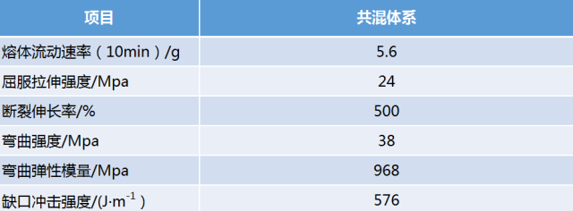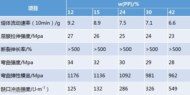 表2:双PP性能配合比,共混体系的性能