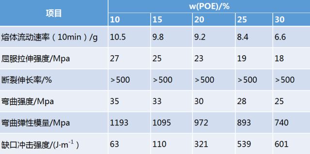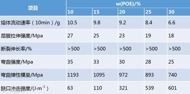 POE是良好的热塑性弹性体,用其增韧PP,获得良好的综合效果;