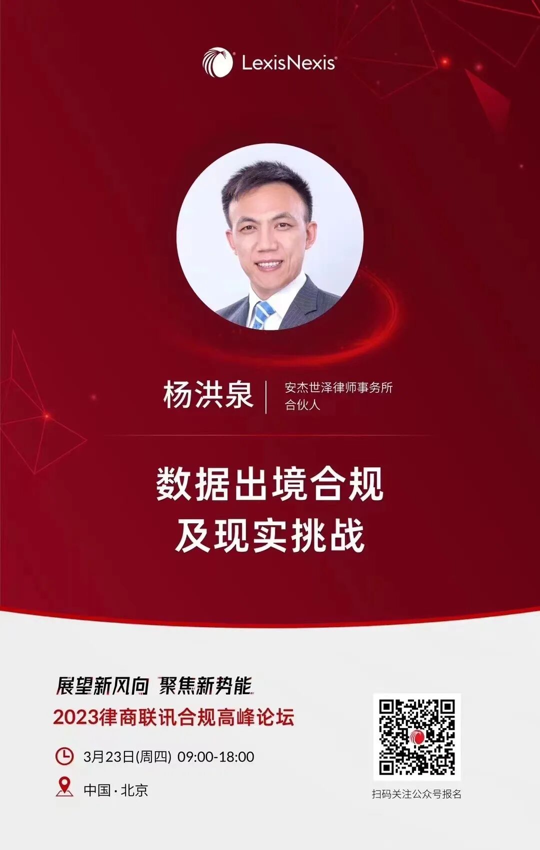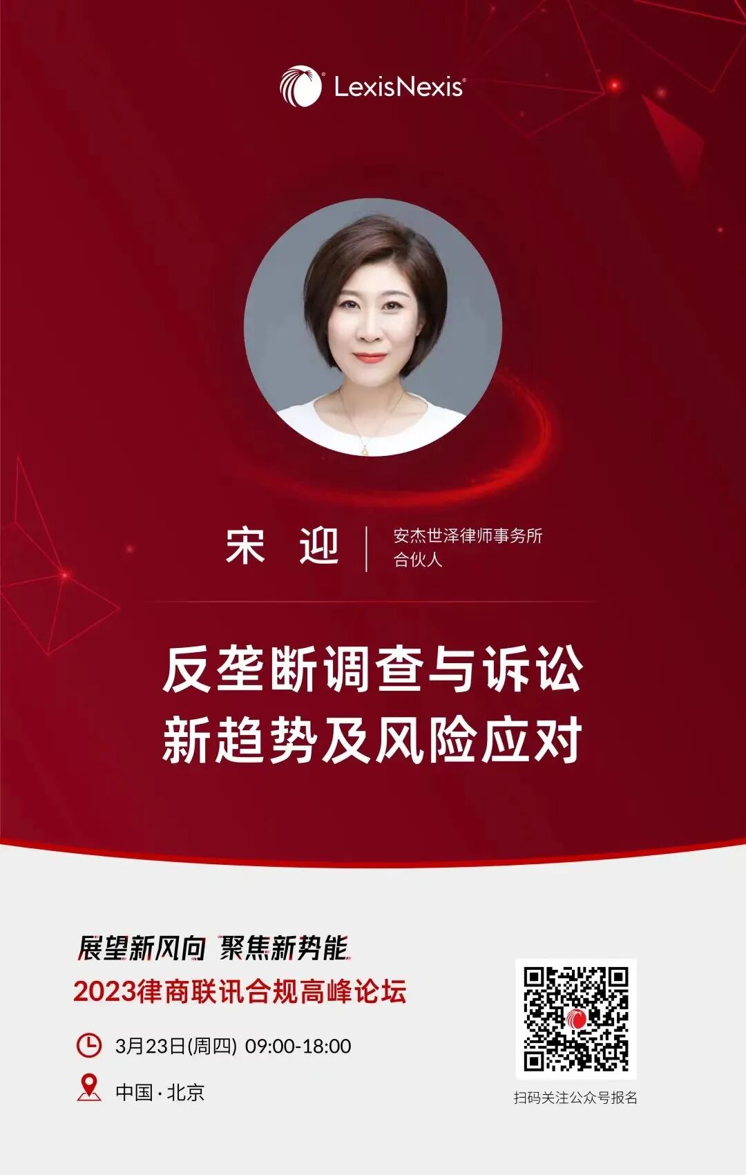 如遇疫情等不可抗力,将动态调整2023律商联讯®合规高峰论坛(北京)的组织筹备方案,请随时关注律商视点微信公众号通知。