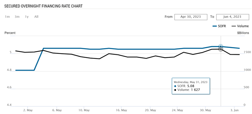 SOFR全称“有抵押隔夜融资利率”,是前一天美国国债回购交易活动中隔夜利率,由纽约联储在每个美国政府债券营业日上午8点左右(美国东部时间)在其官网公布。
