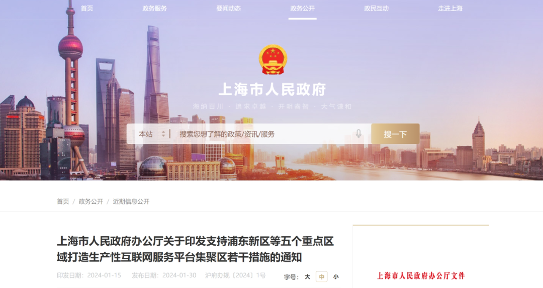 《关于支持浦东新区打造社会主义现代化建设引领区生产性互联网服务平台集聚区的若干措施》提出支持服务平台开发数字产品,鼓励金融机构和平台企业加强合作,运用服务平台真实交易数据的增信支持,进一步完善信贷产品和服务,加大对产业链上下游企业的金融支持。