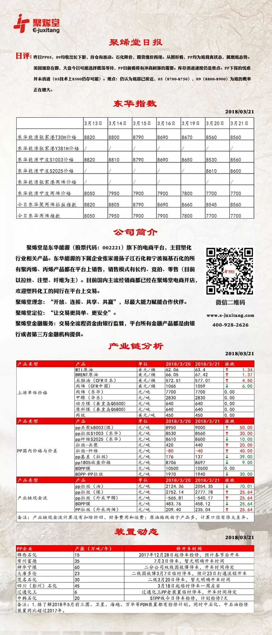 导读:聚烯堂日报【20180321期】底部已接近,05(8700-8750),09(8800-8900)为底的概率正在增大。