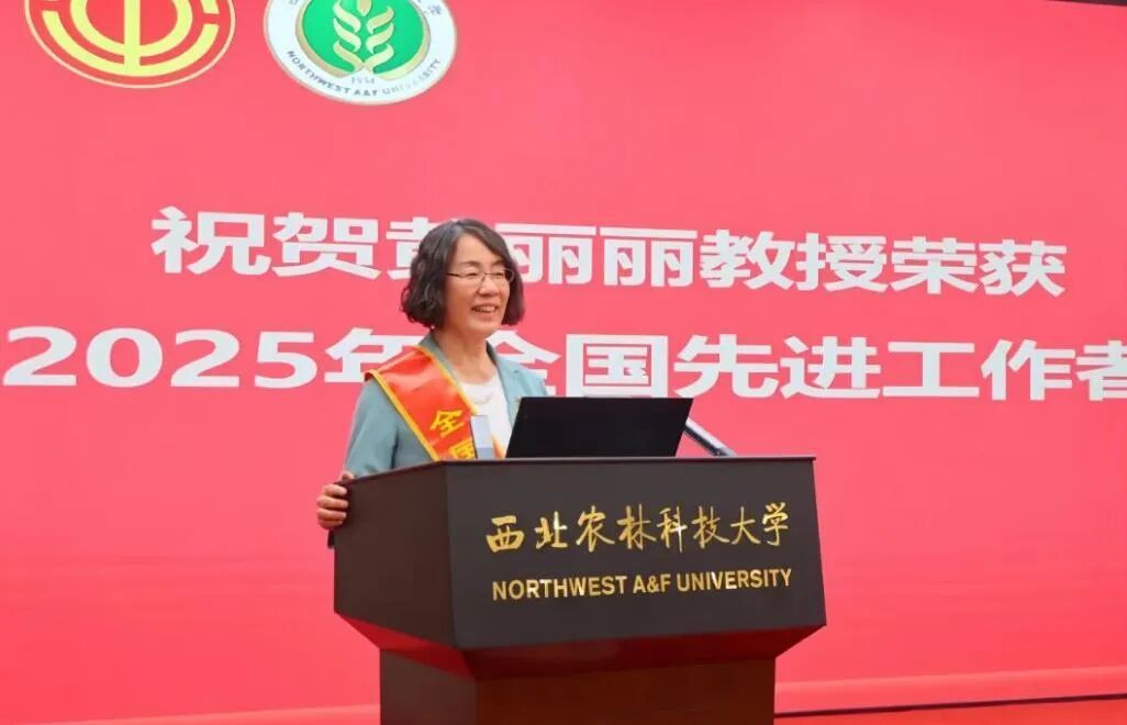 4月28日,黄丽丽荣获“全国先进工作者”称号。佩戴红色绶带的她说:“劳动创造一切,我将始终活跃在讲台、实验室与田间。”