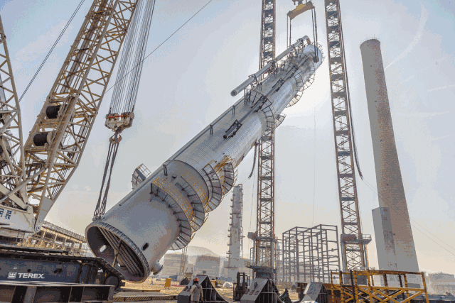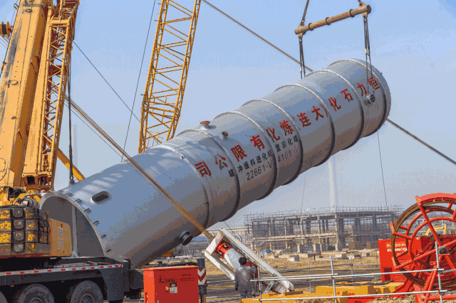 2月23日,C3/IC4脱氢装置1#C3产品分离塔吊装完成。