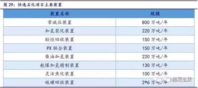 盛虹石化位于连云港石化基地的1600 万吨/年炼化一体化项目也在建设之中。项目规划总占地698.45 公顷,计划建设周期36个月,项目包括陆域工程、配套码头工程和依托工程。项目装置大型化,包括1600 万吨/年常减压蒸馏装置,330万吨/年沸腾床渣油加氢装置,350万吨/年蜡油加氢裂化装置、360 万吨/年柴油加氢裂化装置、280 万吨/年芳烃联合装置,4*15万吨/年硫磺回收装置等。该项目建设之后,将能满足盛虹集团对于PX的需求。盛虹集团PTA装置对PX 的需求达到100 万吨/年,对外依赖度较大,供应风险较高。一体化项目建成之后,可以消除PX的供应风险,最大化生产目标。
