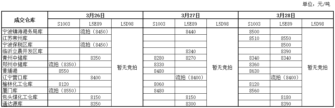 神华PP3月28日竞拍价格一览