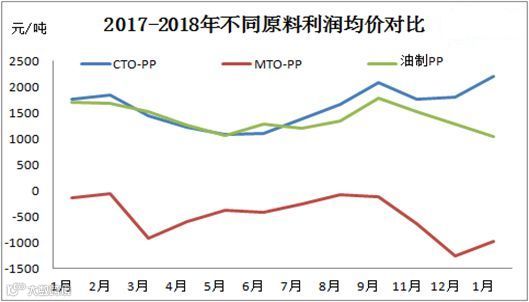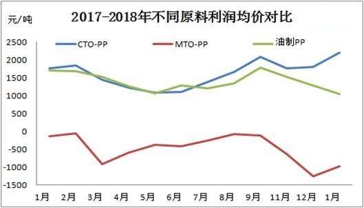 聚丙烯不同原料利润对比中发现,煤制烯烃利润目前处于相对高位状态,其次为油制烯烃,利润最弱的属甲醇制烯烃。煤制烯烃受原料煤炭价格低位影响,煤制成本低位,其利润值在三者中属于偏高的。其次是油制系列,其利润值受石脑油价高影响,其利润值仅次于煤制烯烃。