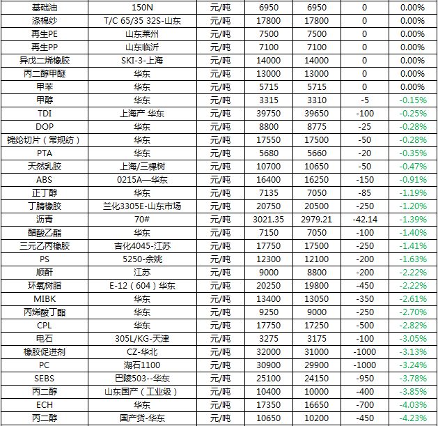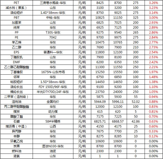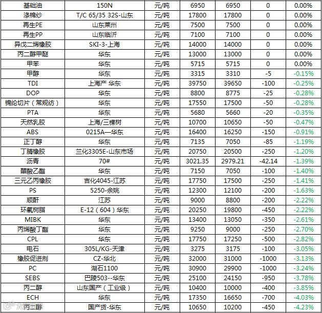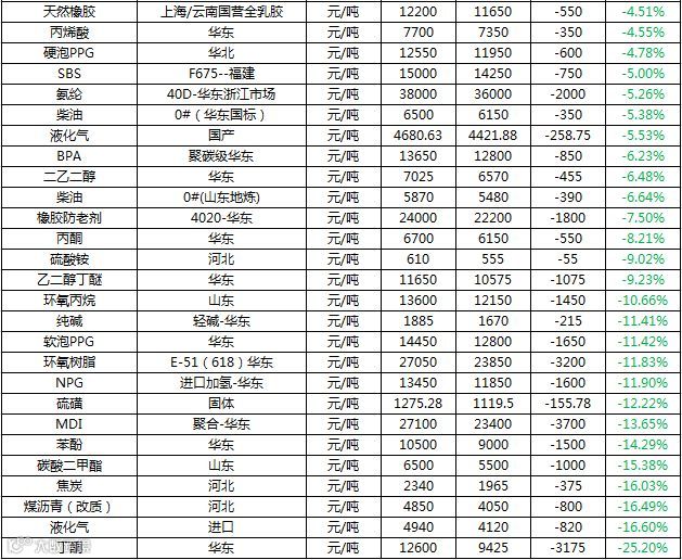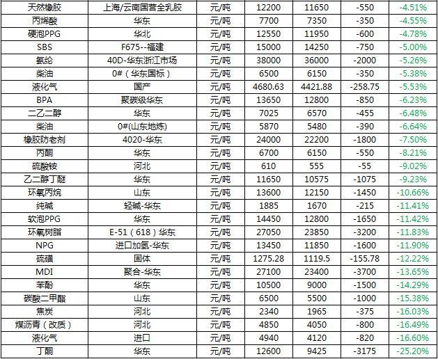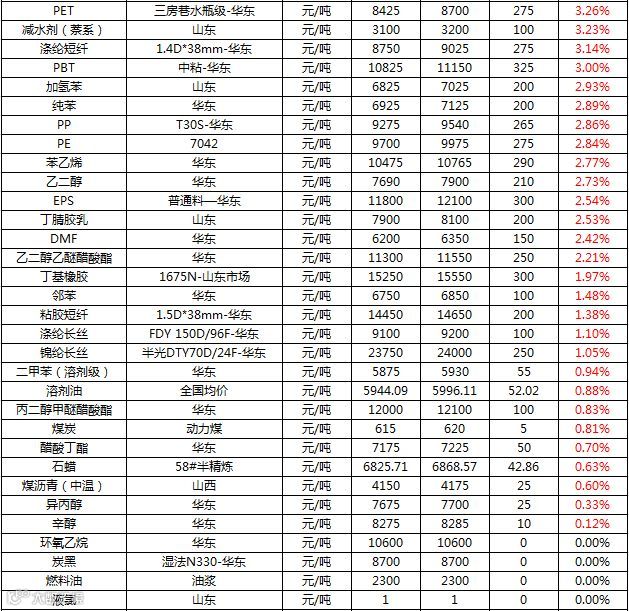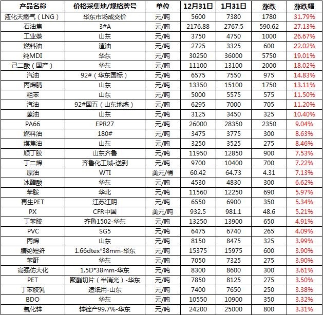 表 卓创资讯1月份大宗商品价格涨跌一览表