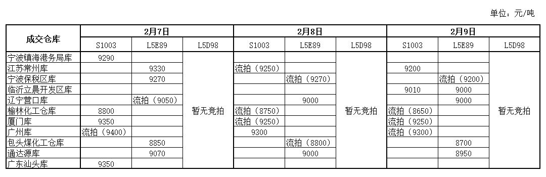 神华PP2月9日竞拍价格一览