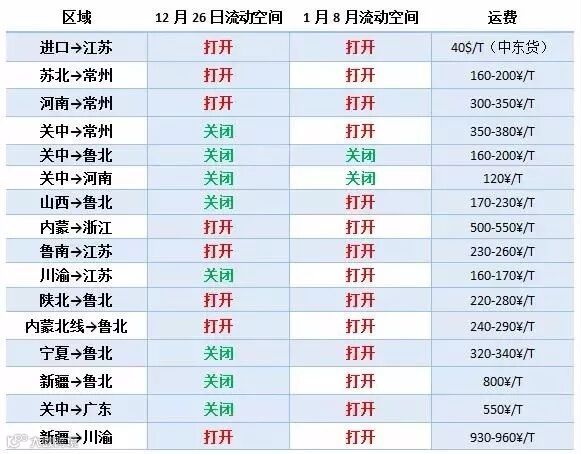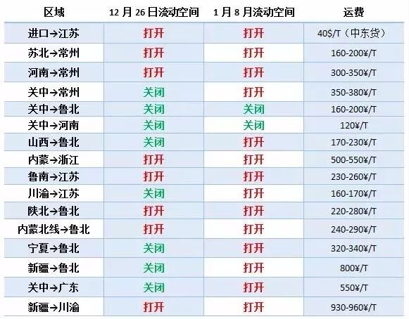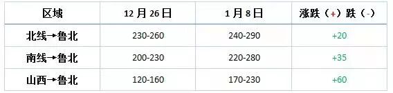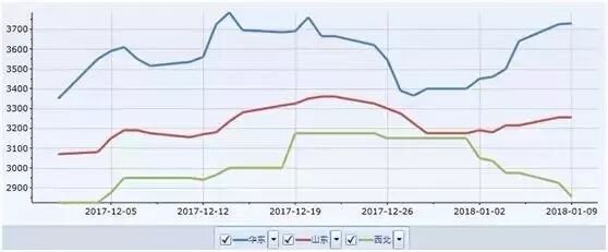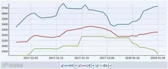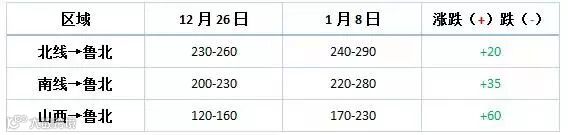 3、雨雪天气影响运费上涨。冬季对于业者来说雨雪天气影响的运输方面情况无疑是最需要关注的。雨雪天气对各地影响不一,对主产区来讲,雨雪天气影响的外运发货使得所得多数企业以积极降价销售为策略;对目的地区域而言,因为天气造成的运输堵塞情况市场将呈现上涨预期。因此1月份以来,区域间走势分化也与此有很大关系,不仅不如,西北地区走势也呈现较强的分化,关中、甘肃一带价格降幅明显,陕北、内蒙一带则多维持平稳态势。