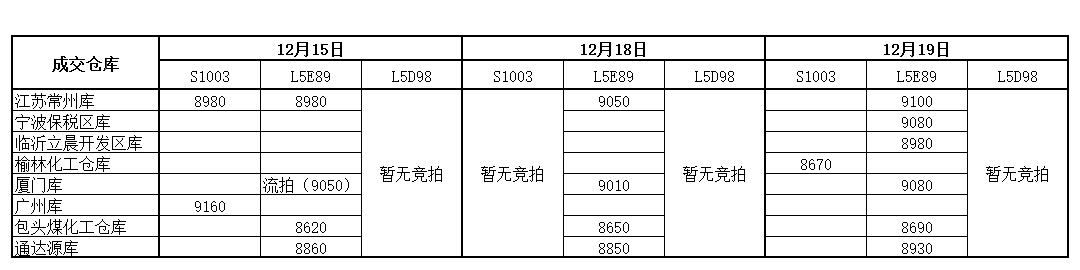 神华PP12月19日竞拍价格一览