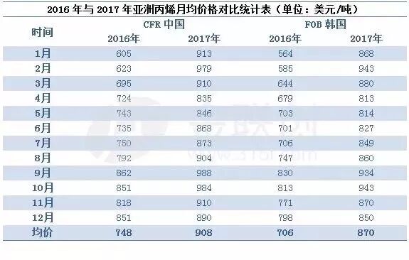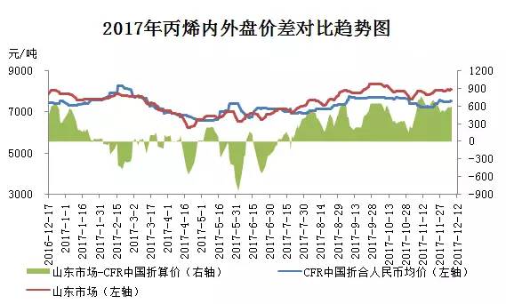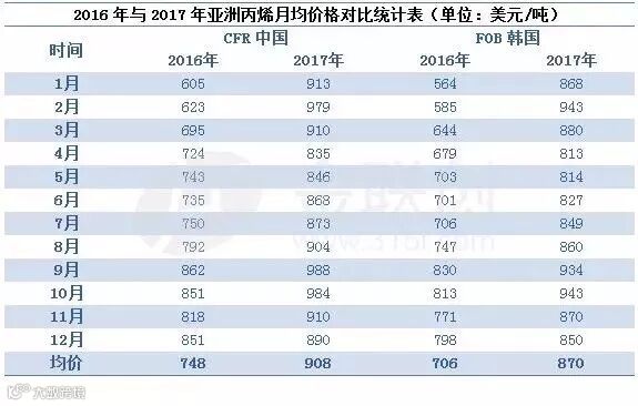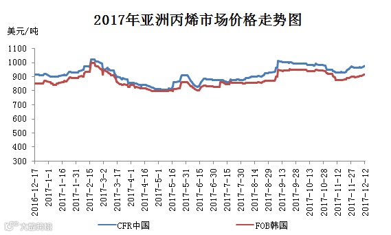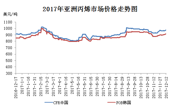 2017年亚洲丙烯市场震荡运行,全年均价在908美元/吨CFR中国。其中最高价为1020美元/吨CFR中国、1000美元/吨FOB韩国,最低为807美元/吨CFR中国、795美元/吨FOB韩国,分别出现在2月中旬和5月上旬。那么,17年亚洲丙烯市场都呈现出哪些特点呢?