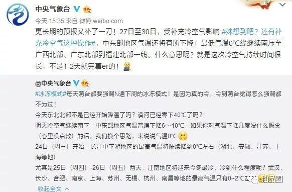 昨天下午15:35,中央气象台再次提醒了本周的天气,提及24日(周三)始,江苏等地气温将下降到0℃以下,25日(周四)-26日(周五)迎来今冬最冷,南京、苏州、无锡等地的最高气温只有0-2℃!