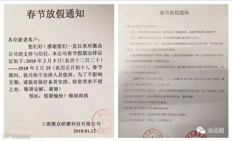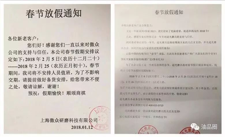 近日,各大磨企又陆续发布了春节放假通知,正式开工预计在农历正月初十(2月25日)以后,更加大了今年春节期间生产供货的不稳定性。