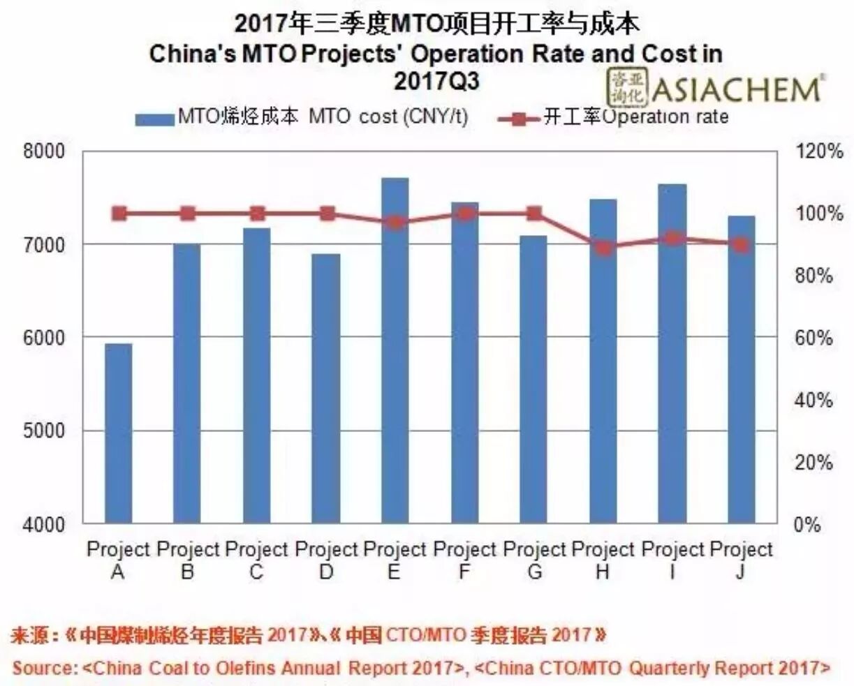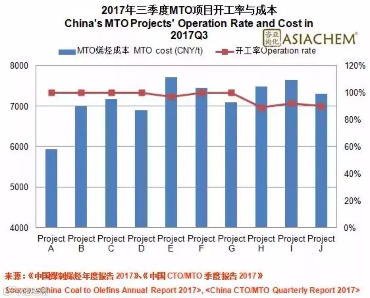 三季度,中国已建成的28套CTO/MTO装置中有7套装置涉及检修或未开启。装置开工率降低,分摊到吨产品的财务费用和折旧成本大幅增加。