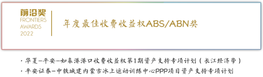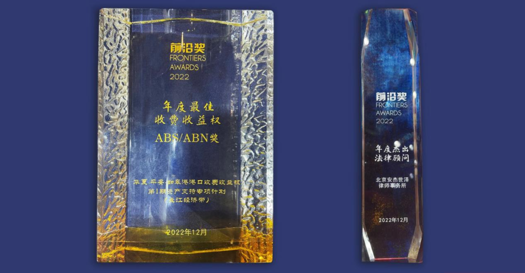 会后,主办方举行了2022中国不动产证券化“前沿奖”颁奖典礼,公布了年度项目、机构表彰名单等。本所主办的“华夏-平安-如皋港港口收费收益权第1期资产支持专项计划(长江经济带)”荣获2022年度不动产证券化“前沿奖”之“年度最佳收费收益权ABS/ABN奖”,同时本所还获得2022年度不动产证券化“前沿奖”之“年度杰出法律顾问”的荣誉。