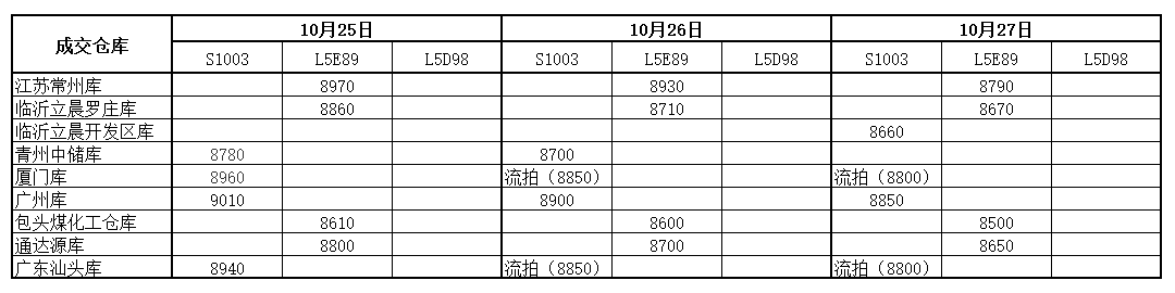 神华PP10月27日竞拍价格一览