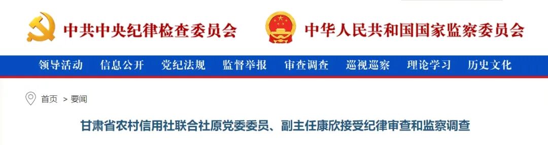 据甘肃省纪委监委消息:甘肃省农村信用社联合社原党委委员、副主任康欣涉嫌严重违纪违法,目前正接受甘肃省纪委监委纪律审查和监察调查。