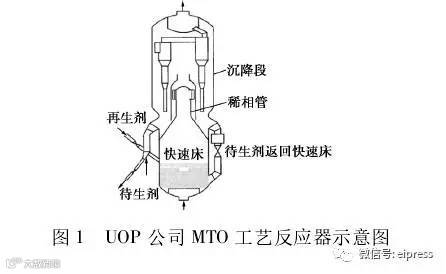 1995年,UOP和挪威的NorskHydro公司合作,在位于挪威Porsgrunn的Hydro研发中心建立了一套甲醇处理量为0.75t/d的MTO试验装置。反应器采用流化床反应器,生焦后的催化剂在再生器内流化再生,依靠反应器和再生器压差实现循环。2000年,UOP公司公开了其MTO工艺的反应器设计。
