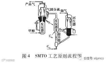 由图可知,工艺采用提升管反应器,甲醇进料由反应器底部进入,与催化剂反应发生完全转化,产品气与催化剂进入分离区。大部分催化剂在重力作用下沉降,少部分催化剂随产品气在旋风分离器进一步回收。沉降器内的催化剂分为两部分:一部分去再生器进行烧焦再生;另一部分循环返回提升管下部。