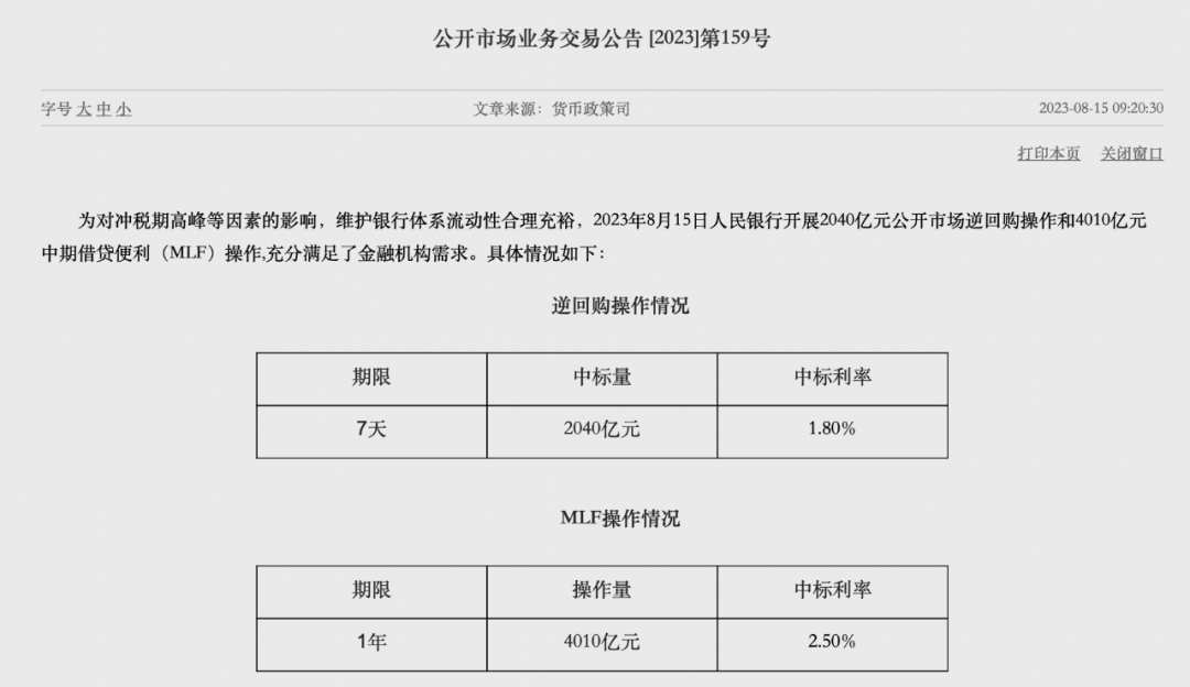 为对冲税期高峰等因素的影响,维护银行体系流动性合理充裕,8月15日,中国人民银行(下称“央行”)开展2040亿元公开市场逆回购操作和4010亿元中期借贷便利(MLF)操作,充分满足了金融机构需求。