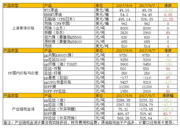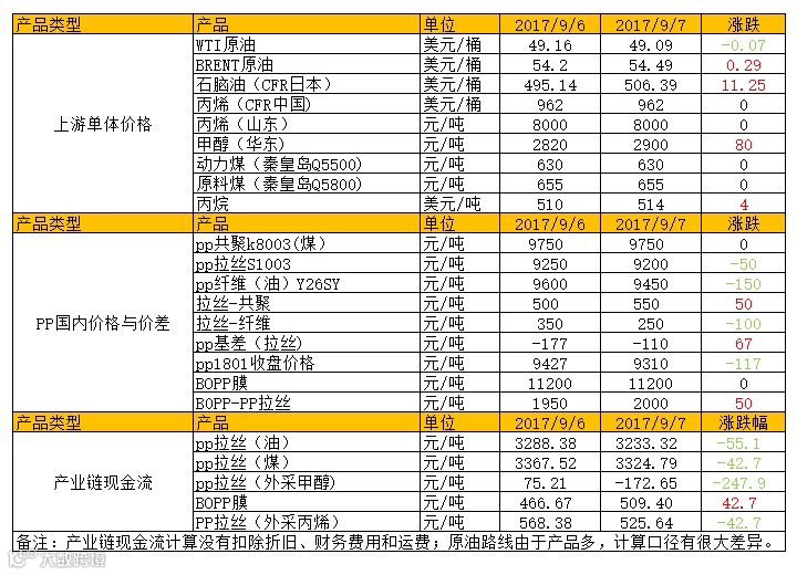 今天PP期货继续大跌,其对现货升水利好消失。现货方面,石化出厂价格暂稳,但是期货大跌,拖累现货价格继续松动。