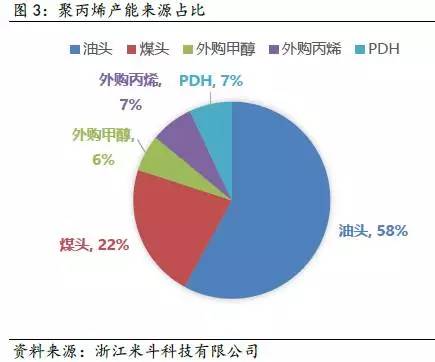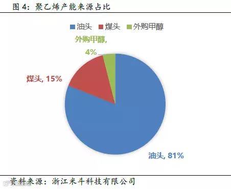 另外,近期在研究中值得注意的一点是,随着工艺的不断进步,聚丙烯和聚乙烯的生产工艺层出不穷(见图3和图4),从最先的原油至石脑油裂解,到近几年“风生水起”的煤化工技术(如大连化物所的DMTO技术),PDH生产工艺(丙烷脱氢技术)。