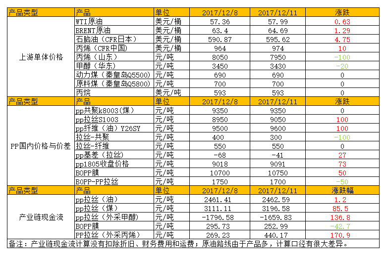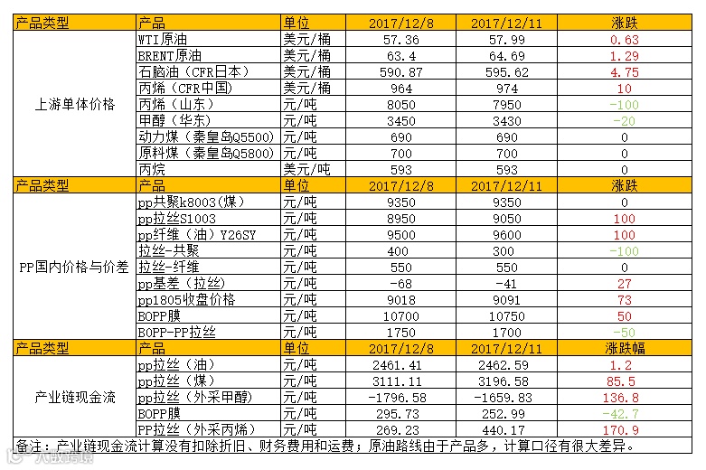 华东拉丝主流价格9050元/吨,涨幅100元/吨,期货市场震荡走高,加之石化出厂价稳定支撑,场内心态较上周末有所好转。绍兴三圆临时停车检修,开工率小幅下滑,但终端新增订单有限,市场库存消化缓慢。多空交织影响下找塑料预计近期PP市场价格窄幅整理,建议业者密切关注石化出厂价格及PP期货走势。