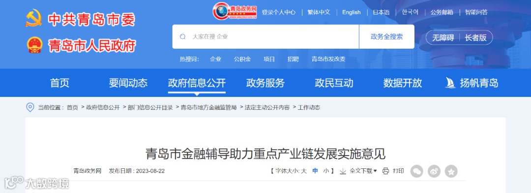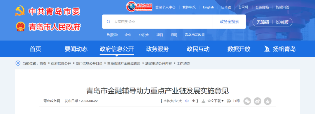 近日,《青岛市金融辅导助力重点产业链发展实施意见》(以下简称“意见”)出台,包括建好用好金融服务平台、探索产业链金融招商、优化产业链金融服务等十二条政策引导更多金融资源支持实体经济振兴和高质量发展。