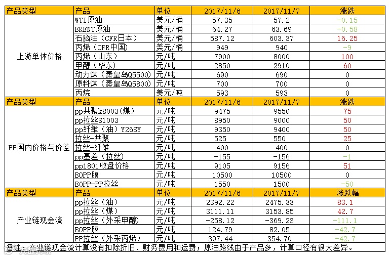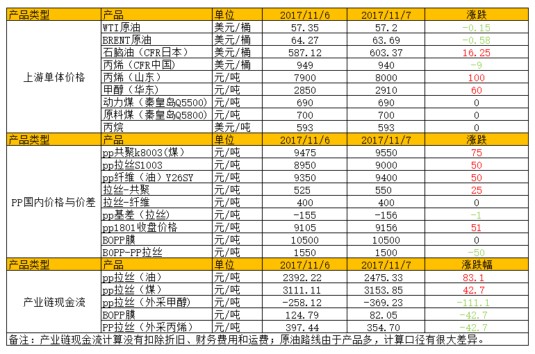 华东拉丝主流价格9000元/吨,涨幅50元/吨。期货市场行情好转,成交明显改善,石化库存继续回落;PP出厂价格全面上调,成本面支撑较强,PP暂无下跌之忧;PP期货延续强势,目前已经站上9100大关,对现货继续升水。总体来讲目前PP利好为主,短期市场易涨难跌,尤其是低价货源补涨预期较强。