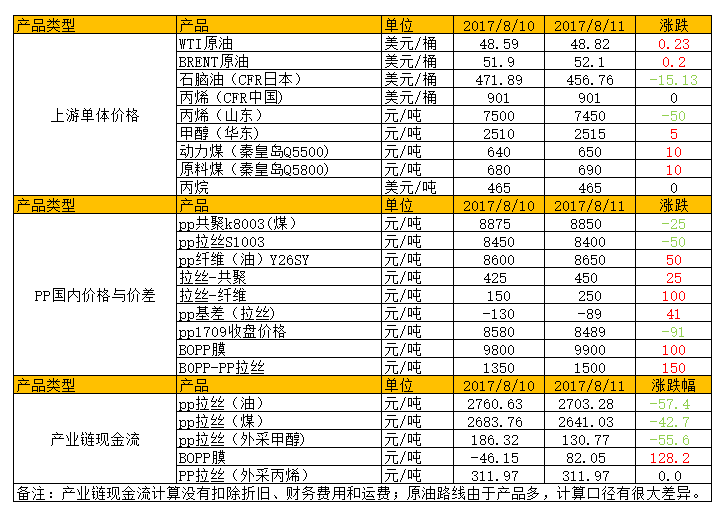 8月11日PP产业现金流分析跟踪统计