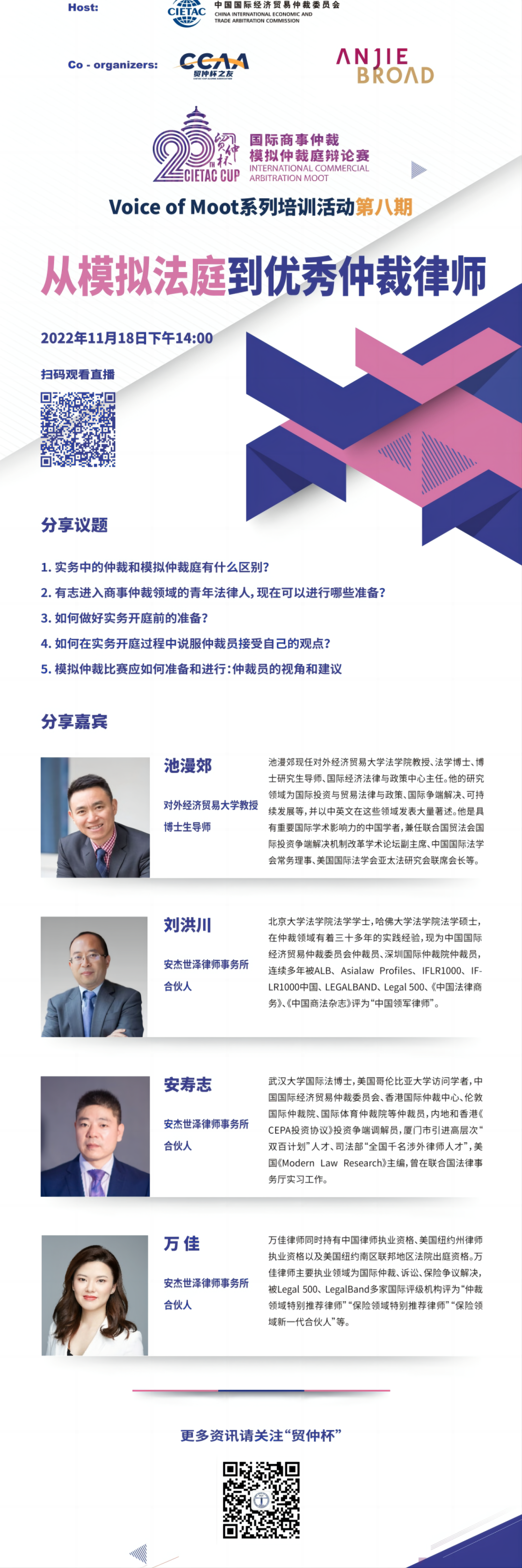 导读:活动邀请 · 线上 | 11月18日 从模拟法庭到优秀仲裁律师@CIETAC CUP Voice of Moot