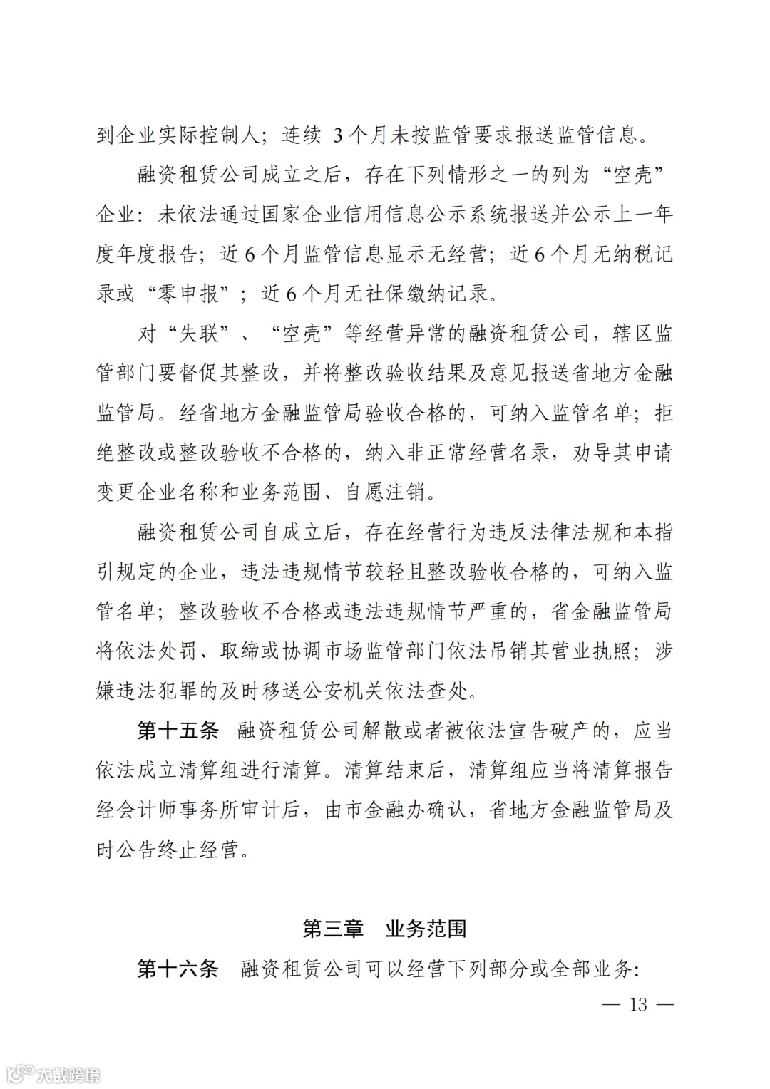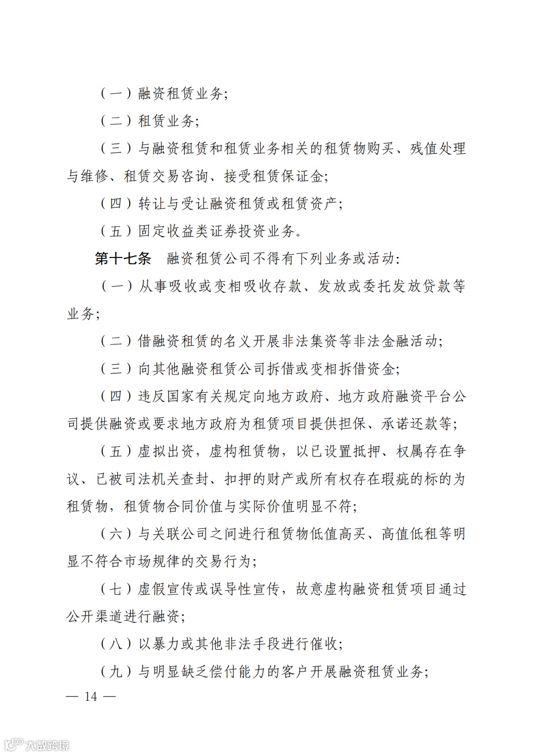 (二)借融资租赁的名义开展非法集资等非法金融活动;