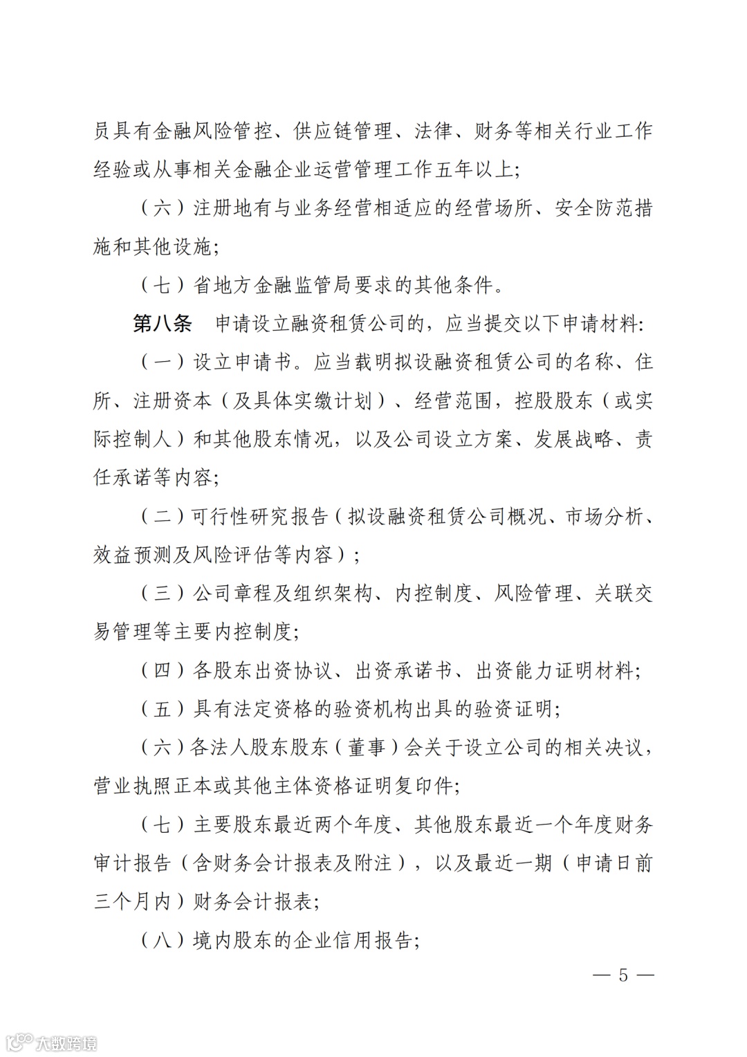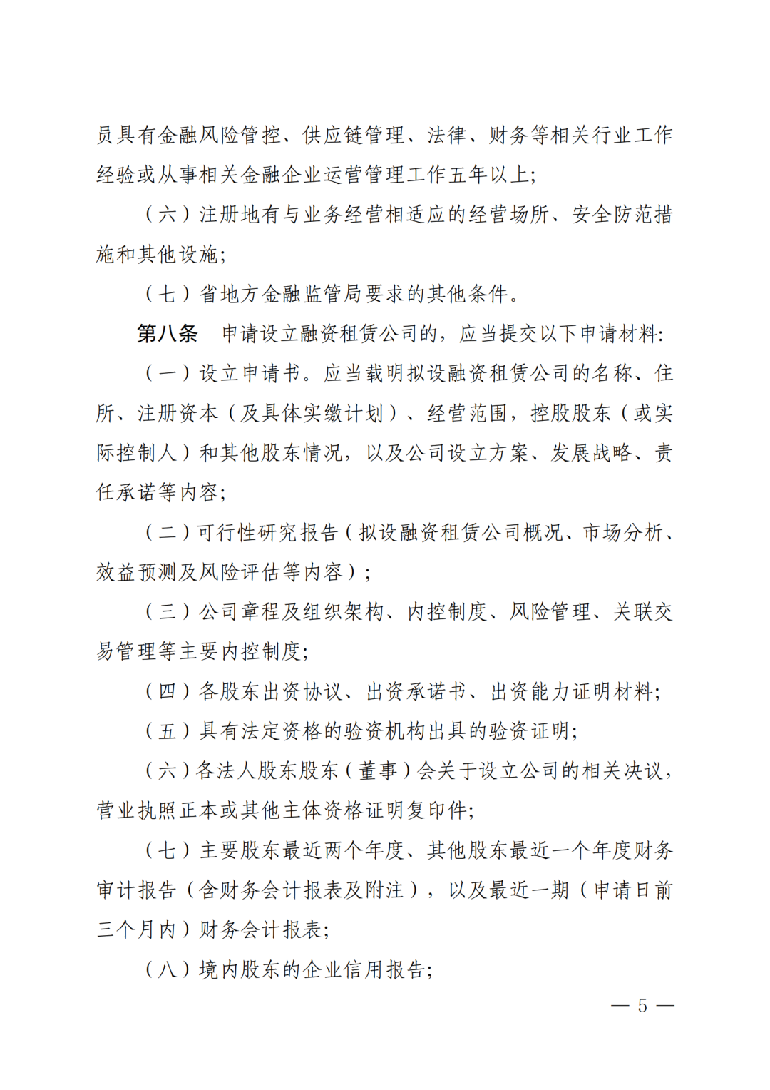 (五)相关法律法规和省地方金融监管局规定的其他条件。