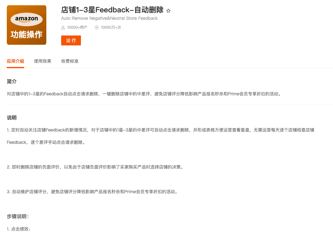 店铺1-3星Feedback-自动删除:自动删除中差评,避免店铺评分降低影响产品报名秒杀和Prime会员专享折扣的活动。