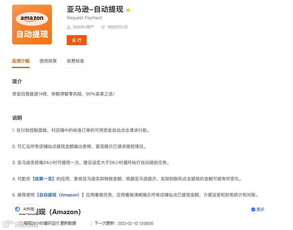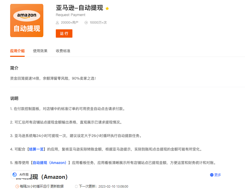 自动提现:亚马逊卖家必备RPA。不用上网、不用开机,设置成为全部店铺每隔26小时自动提现一次,每天正常提现,金币落袋声不断;