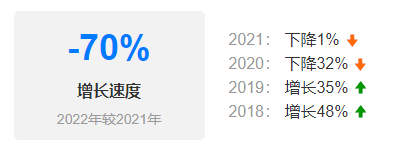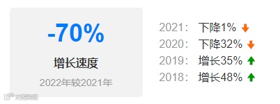 从职友集上的数据上看,虽然从2020年开始,亚马逊运营的岗位数量一直在减少,但2022年较2021年亚马逊运营的岗位数量增长速度暴跌70%。